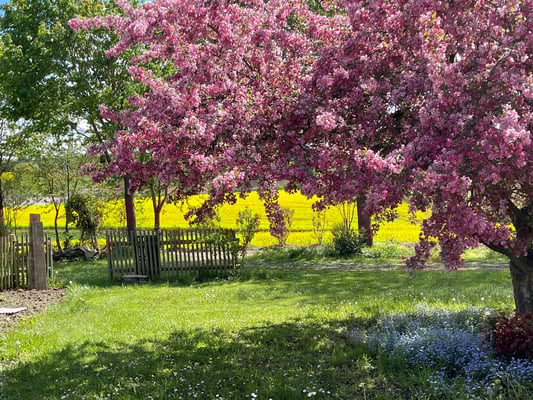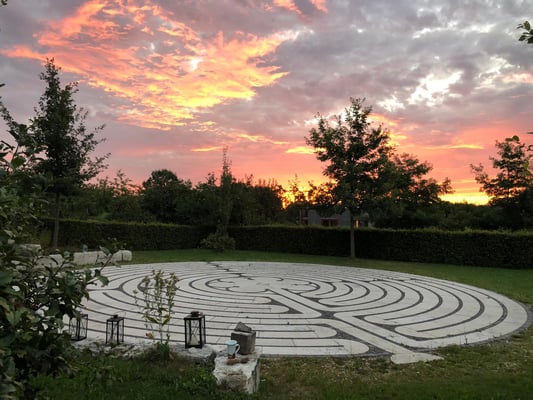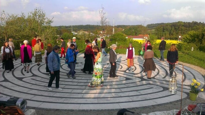 Auf dem Grundstück befindet sich ein Garten der Selbstbegegnung mit Feuerplatz, Erdhöhle, Wasserstelle und Meditationshäuschen sowie ein Originalnachbau des Labyrinthes von Chartres. In Fußnähe (10 Minuten) befindet sich ein günstiges Hotel Garni www.hotelabenstal.com und in den umliegenden Ortschaften sehr günstige Pensionen und Ferienwohnungen zum Übernachten.